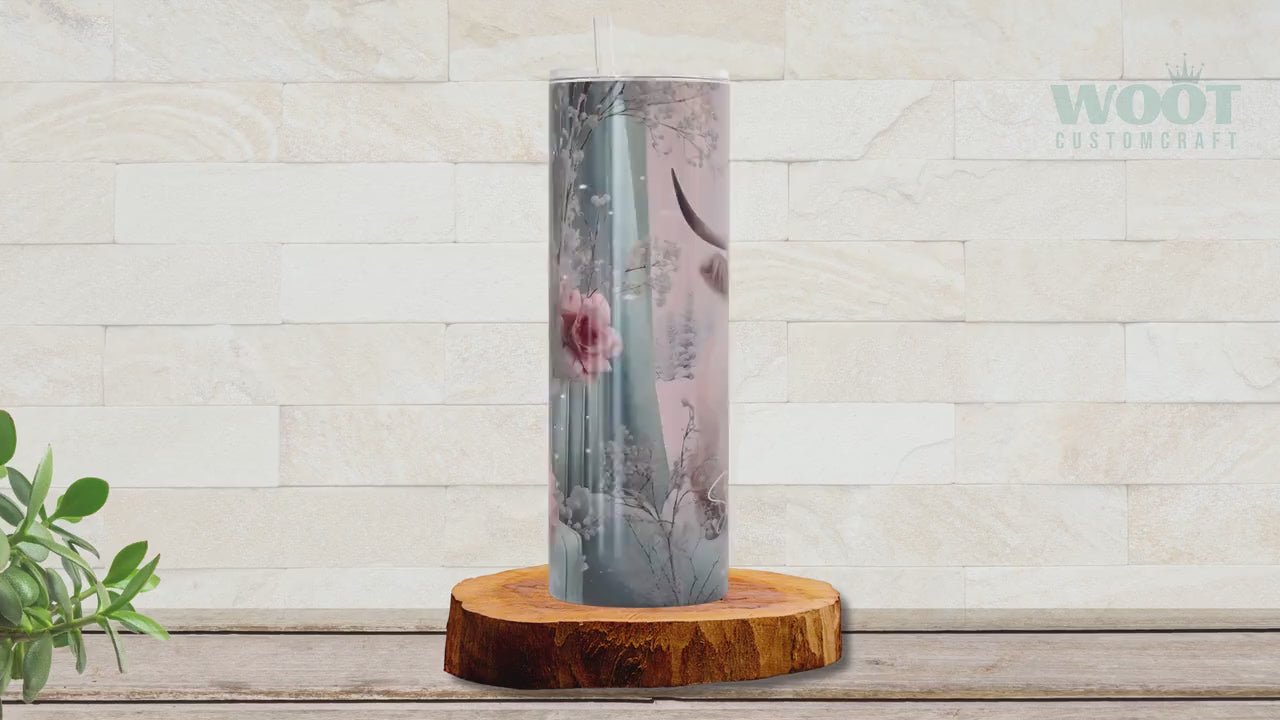 Personalized Winter Highland Cow Tumbler - Christmas Gift for Cow Lovers